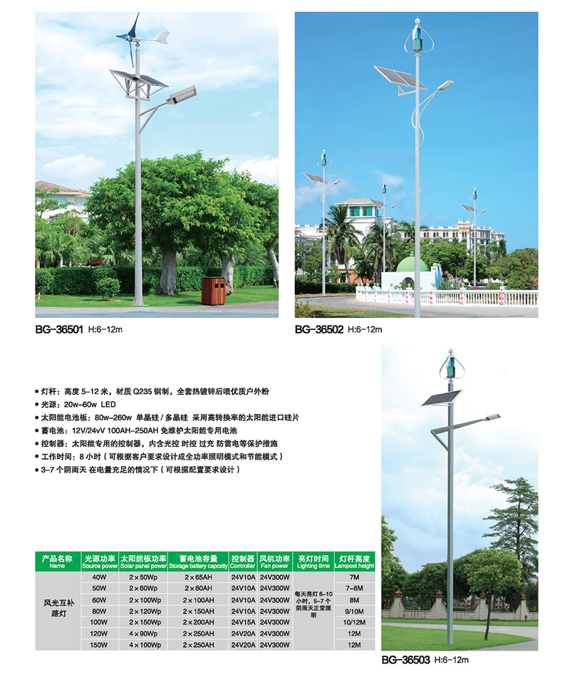 微風(fēng)感應(yīng)風(fēng)光互補(bǔ)太陽(yáng)能LED路燈詳細(xì)介紹: