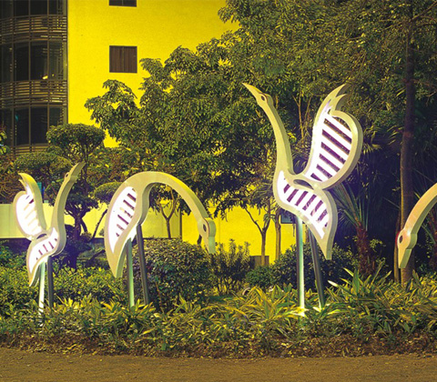 * 仙鶴造型景觀燈燈體可采用優(yōu)質不銹鋼、鍍鋅鋼板或鋁材等;