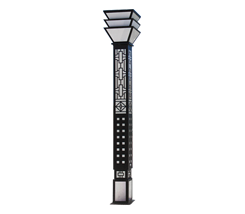 特色文化景觀燈柱呈立柱式造型,燈體為方形立柱四周鏤空內(nèi)透光設(shè)計整體透光,四周花紋采用中式窗格效果,上裝采用三層平頂式結(jié)構(gòu)整體協(xié)調(diào)設(shè)計使得整燈穩(wěn)重美觀大方,景觀燈柱內(nèi)配PMMA亞克力燈罩或PC磨砂燈罩,透光效果柔和均勻,安裝在公園、廣場上既能體現(xiàn)出特色文化韻味又能在夜間光影亮化照明效果;
