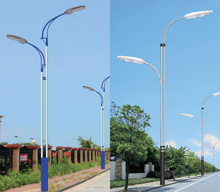 圓管雙桿雙臂高低臂路燈桿詳細(xì)介紹: