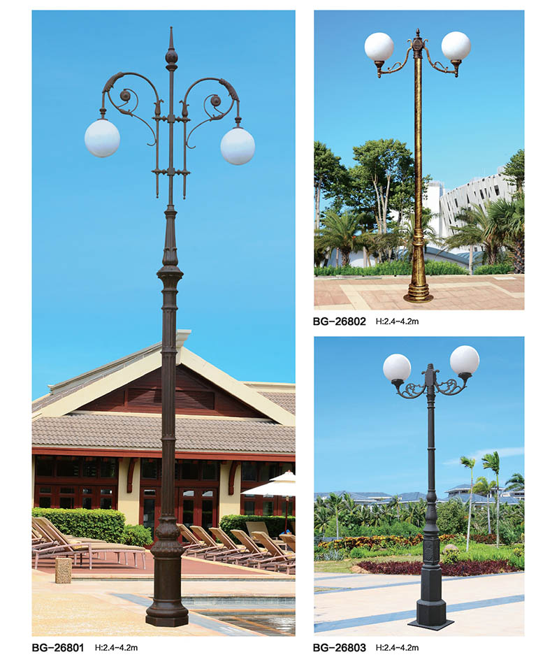 奶白圓球雙燈頭砂鑄鋁庭院燈詳細(xì)介紹: