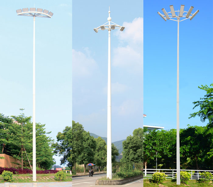 城市廣場照明、公園出入口廣場、景區(qū)廣場、道路交叉路口、學(xué)校操場、戶外足球場、籃球場、羽毛球場等各類大面積照明立桿